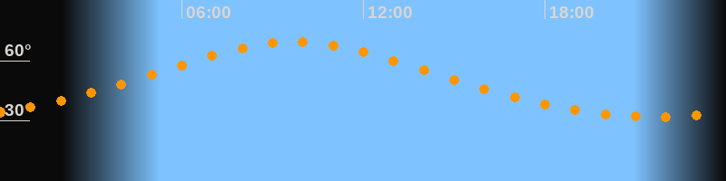 | Höchster Stand (Kulmination) | 09:44 Uhr (h = 69,3°) |