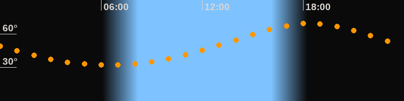 | Höchster Stand (Kulmination) | 18:24 Uhr (h = 69,3°) |