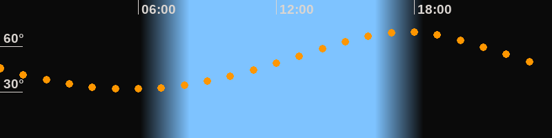 | Höchster Stand (Kulmination) | 17:36 Uhr (h = 69,3°) |