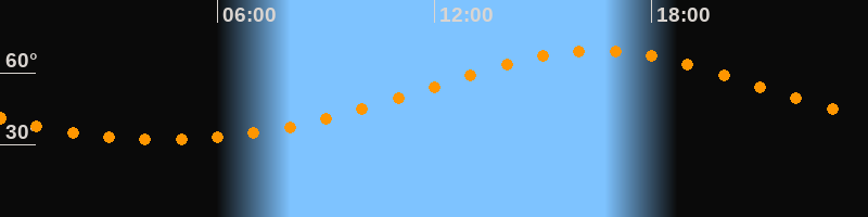 | Höchster Stand (Kulmination) | 16:30 Uhr (h = 69,3°) |