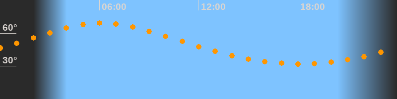 | Höchster Stand (Kulmination) | 06:08 Uhr (h = 69,3°) |
