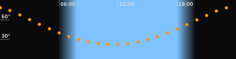 | Höchster Stand (Kulmination) | 23:30 Uhr (h = 79,2°) |
