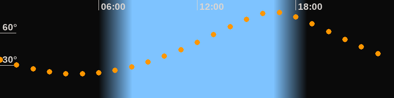 | Höchster Stand (Kulmination) | 16:41 Uhr (h = 79,2°) |