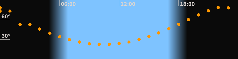 | Höchster Stand (Kulmination) | 22:25 Uhr (h = 79,2°) |
