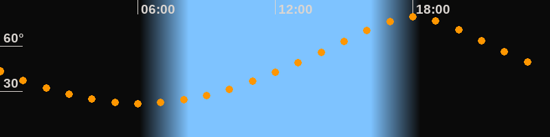 | Höchster Stand (Kulmination) | 18:02 Uhr (h = 79,2°) |