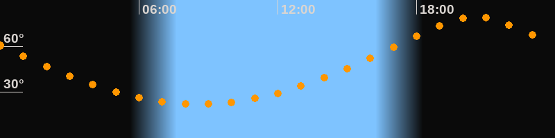 | Höchster Stand (Kulmination) | 20:33 Uhr (h = 79,2°) |