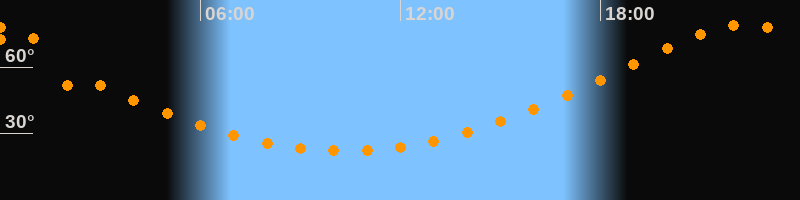 | Höchster Stand (Kulmination) | 22:17 Uhr (h = 79,2°) |