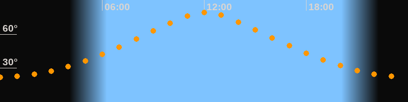 | Höchster Stand (Kulmination) | 12:04 Uhr (h = 79,2°) |