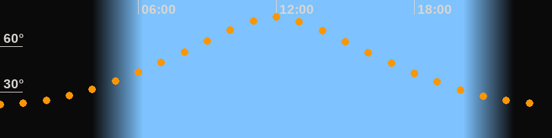 | Höchster Stand (Kulmination) | 11:57 Uhr (h = 79,2°) |