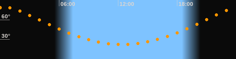 | Höchster Stand (Kulmination) | 00:25 Uhr (h = 79,2°) |
