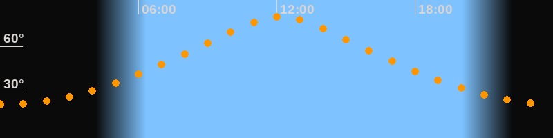 | Höchster Stand (Kulmination) | 12:10 Uhr (h = 79,2°) |