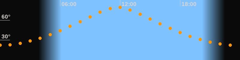 | Höchster Stand (Kulmination) | 11:46 Uhr (h = 79,2°) |