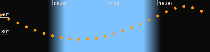 | Höchster Stand (Kulmination) | 21:04 Uhr (h = 79,2°) |