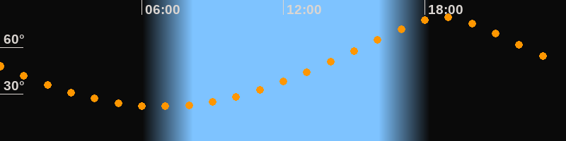 | Höchster Stand (Kulmination) | 18:47 Uhr (h = 79,2°) |