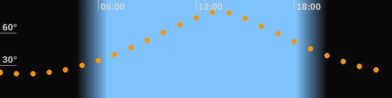 | Höchster Stand (Kulmination) | 13:25 Uhr (h = 79,2°) |