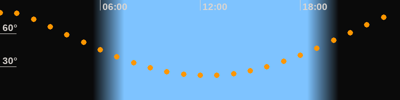 | Höchster Stand (Kulmination) | 00:20 Uhr (h = 79,2°) |