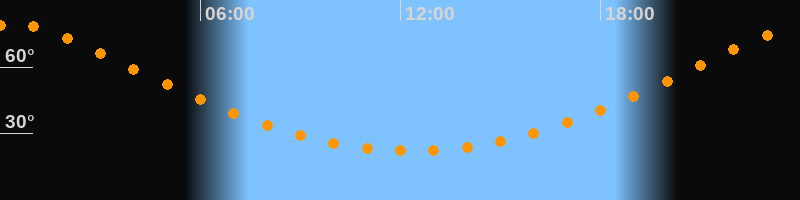 | Höchster Stand (Kulmination) | 00:21 Uhr (h = 79,2°) |