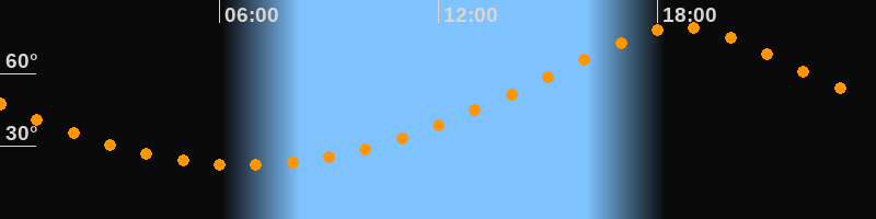 | Höchster Stand (Kulmination) | 18:40 Uhr (h = 79,2°) |