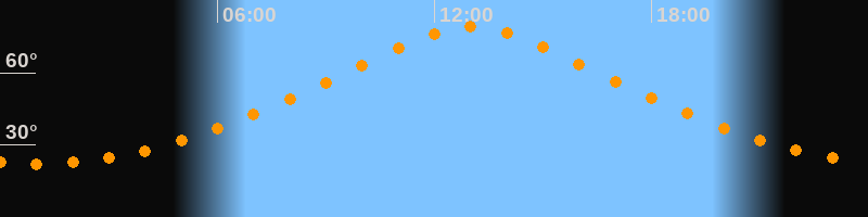 | Höchster Stand (Kulmination) | 13:01 Uhr (h = 79,2°) |