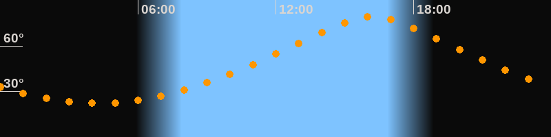 | Höchster Stand (Kulmination) | 16:12 Uhr (h = 79,2°) |