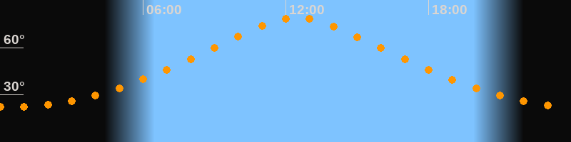 | Höchster Stand (Kulmination) | 12:29 Uhr (h = 79,2°) |