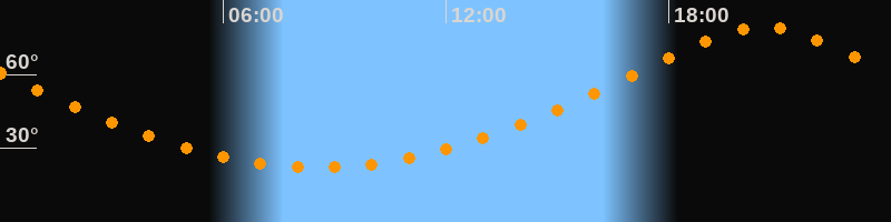 | Höchster Stand (Kulmination) | 20:33 Uhr (h = 79,2°) |