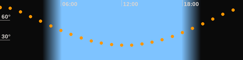 | Höchster Stand (Kulmination) | 00:14 Uhr (h = 79,2°) |