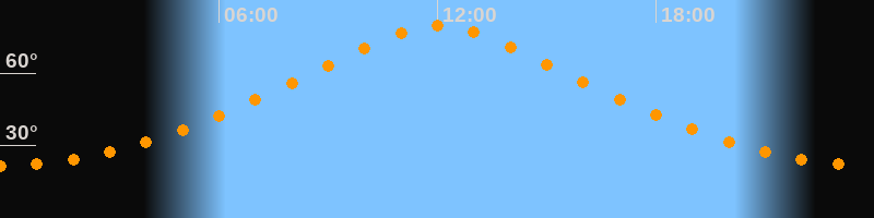 | Höchster Stand (Kulmination) | 12:01 Uhr (h = 79,7°) |