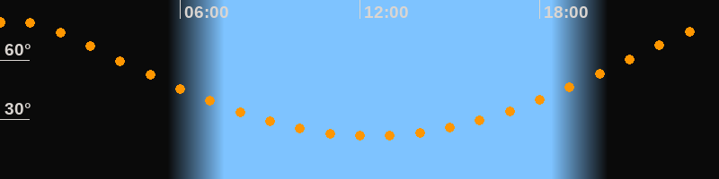 | Höchster Stand (Kulmination) | 00:25 Uhr (h = 79,7°) |