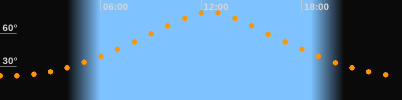 | Höchster Stand (Kulmination) | 12:29 Uhr (h = 79,7°) |