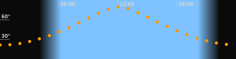 | Höchster Stand (Kulmination) | 12:06 Uhr (h = 79,7°) |