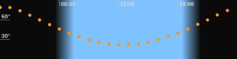 | Höchster Stand (Kulmination) | 00:26 Uhr (h = 79,7°) |