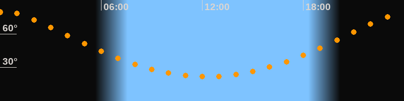 | Höchster Stand (Kulmination) | 00:15 Uhr (h = 79,7°) |