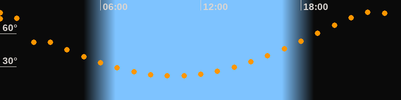 | Höchster Stand (Kulmination) | 22:24 Uhr (h = 79,7°) |