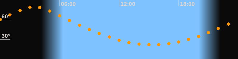| Höchster Stand (Kulmination) | 03:24 Uhr (h = 79,7°) |