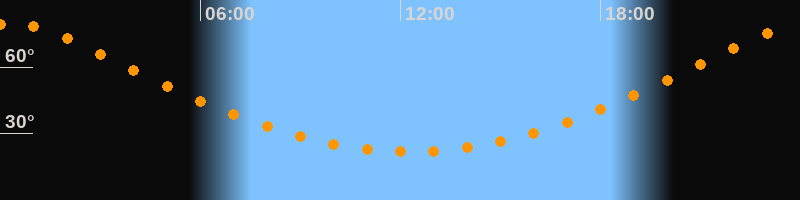 | Höchster Stand (Kulmination) | 00:16 Uhr (h = 79,7°) |