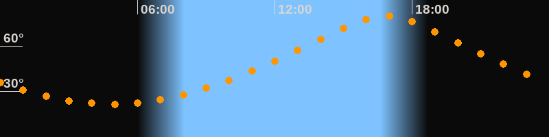 | Höchster Stand (Kulmination) | 16:50 Uhr (h = 79,7°) |