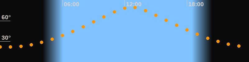 | Höchster Stand (Kulmination) | 12:39 Uhr (h = 79,7°) |