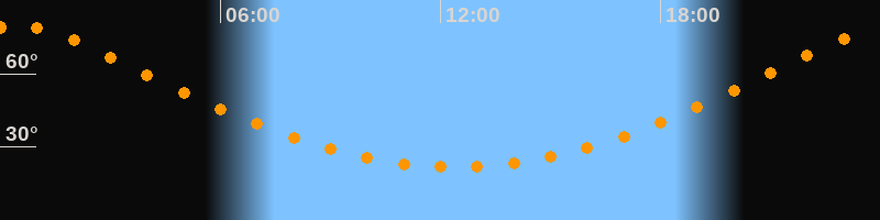| Höchster Stand (Kulmination) | 00:24 Uhr (h = 79,7°) |