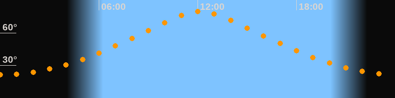| Höchster Stand (Kulmination) | 12:09 Uhr (h = 79,7°) |