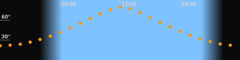 | Höchster Stand (Kulmination) | 12:05 Uhr (h = 79,7°) |