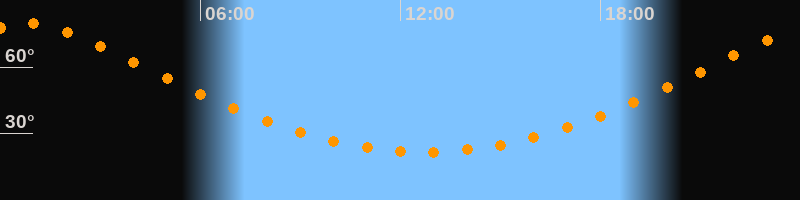| Höchster Stand (Kulmination) | 00:45 Uhr (h = 79,7°) |