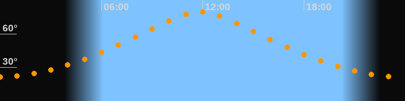 | Höchster Stand (Kulmination) | 11:50 Uhr (h = 79,7°) |