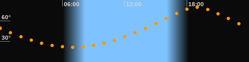 | Höchster Stand (Kulmination) | 18:59 Uhr (h = 79,7°) |