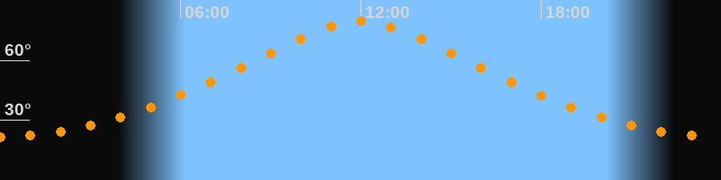 | Höchster Stand (Kulmination) | 11:59 Uhr (h = 79,7°) |