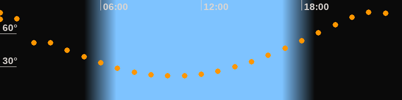 | Höchster Stand (Kulmination) | 22:20 Uhr (h = 79,7°) |