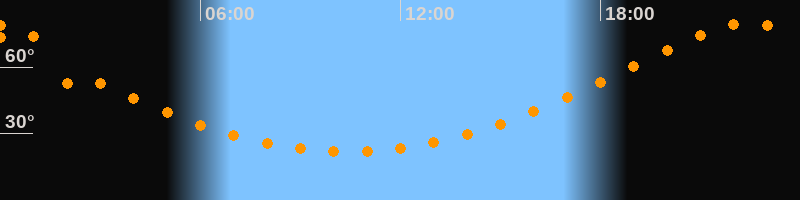 | Höchster Stand (Kulmination) | 22:25 Uhr (h = 79,7°) |