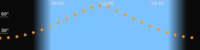 | Höchster Stand (Kulmination) | 12:01 Uhr (h = 79,7°) |