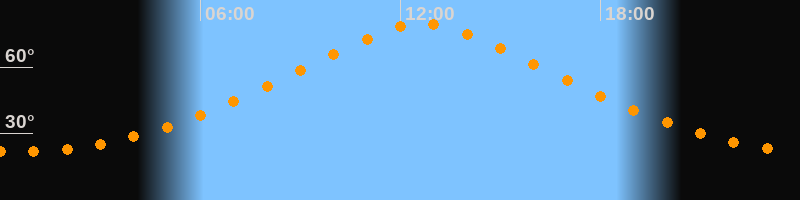 | Höchster Stand (Kulmination) | 12:40 Uhr (h = 79,7°) |