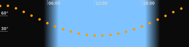 | Höchster Stand (Kulmination) | 00:29 Uhr (h = 79,7°) |